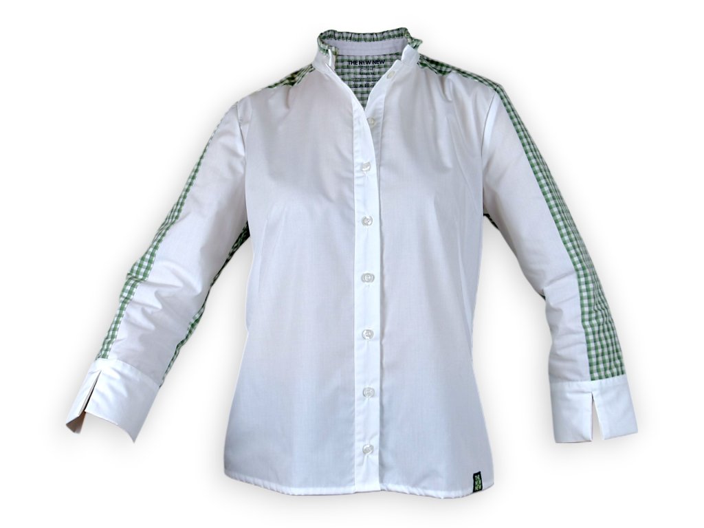 Tahle dámská košile vznikla ze dvou vyřazených pánských košil, který jsme vybrali tak, aby si sedly – vzorem i materiálem. Výsledkem je kousek, co v obchodě prostě nenajdete.