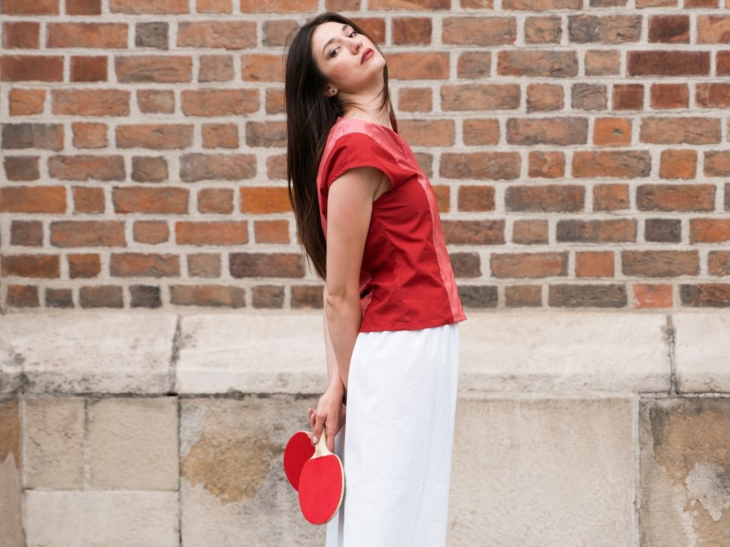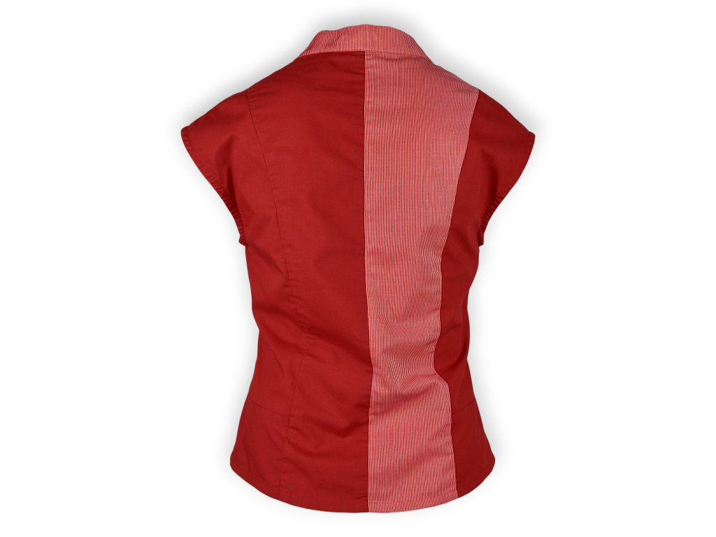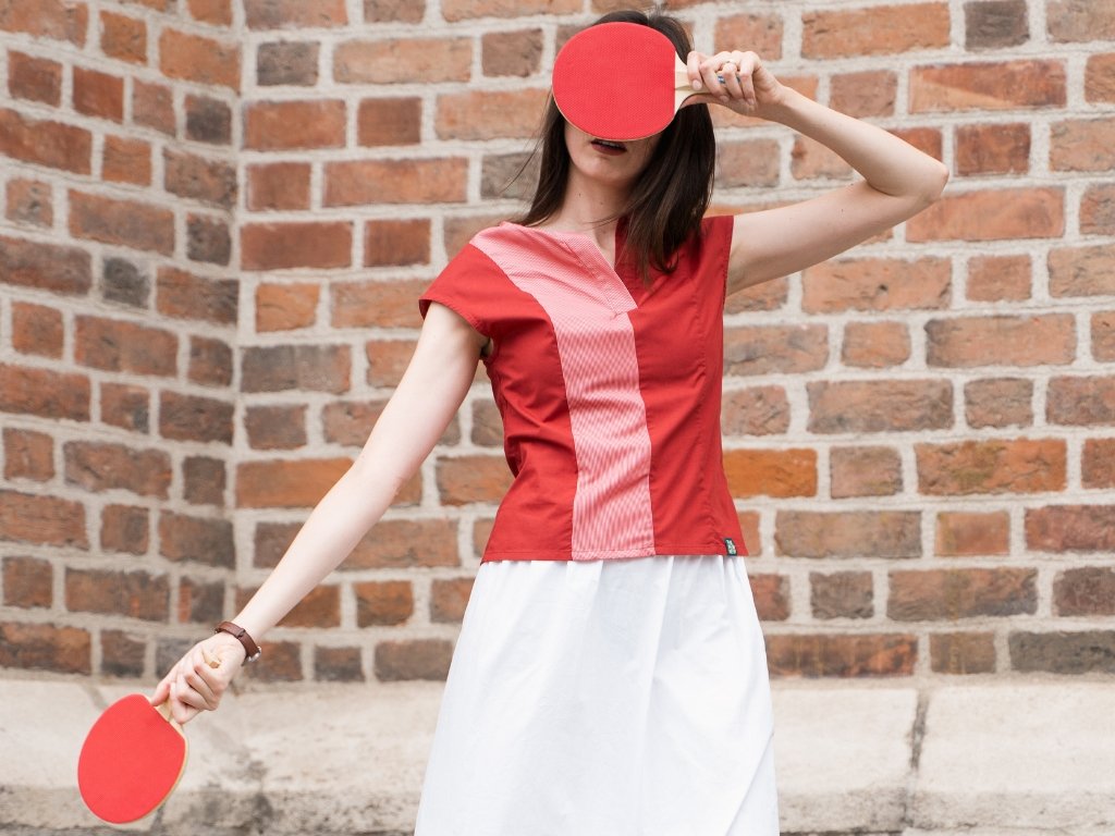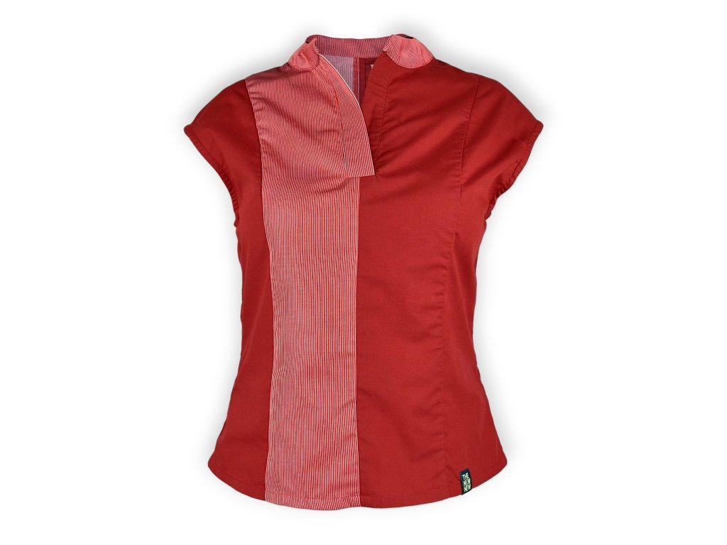 Dámská polokošile je z tkaniny bez elastanu a nemá zapínání. Má jemně volnější střih, aby šla zastrčit do sukně nebo kalhot a trochu podkasat. Nemá být upnutá, to byste ji neoblíkly.