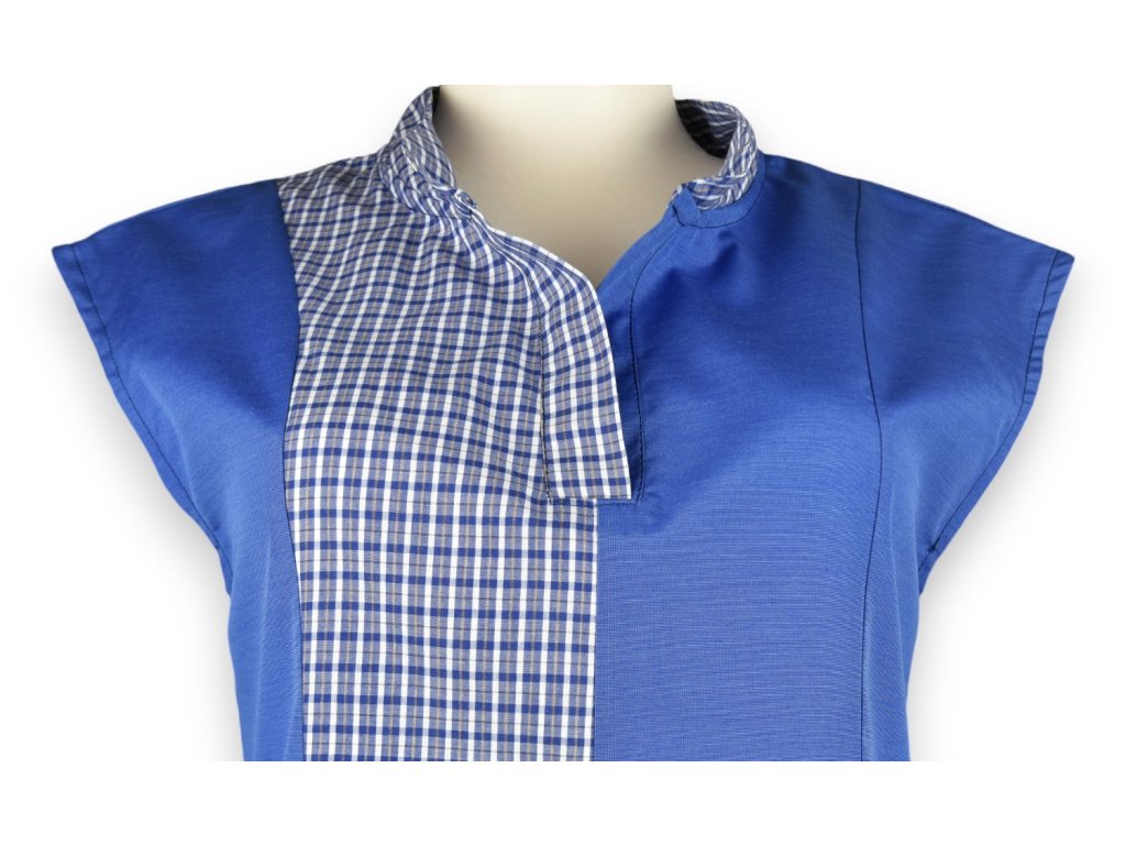 Dámská polokošile je z tkaniny bez elastanu a nemá zapínání. Má jemně volnější střih, aby šla zastrčit do sukně nebo kalhot a trochu podkasat. Nemá být upnutá, to byste ji neoblíkly.