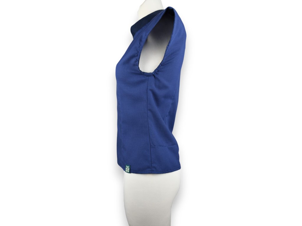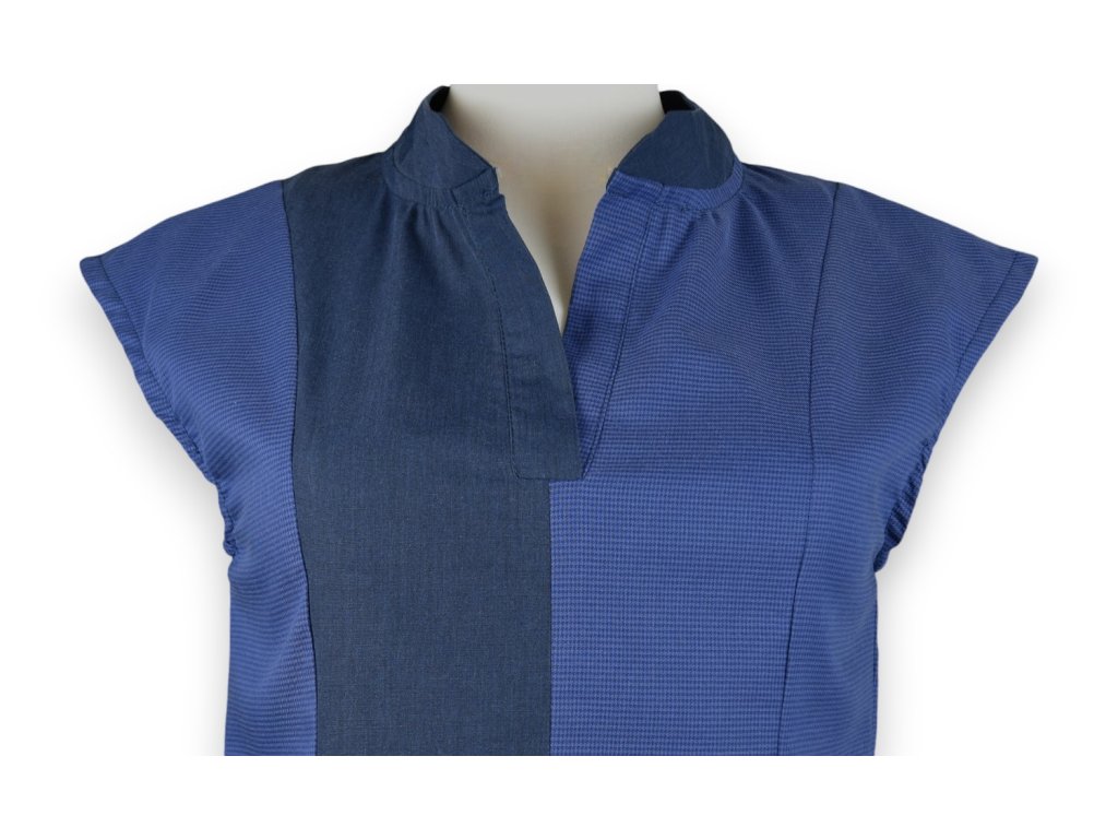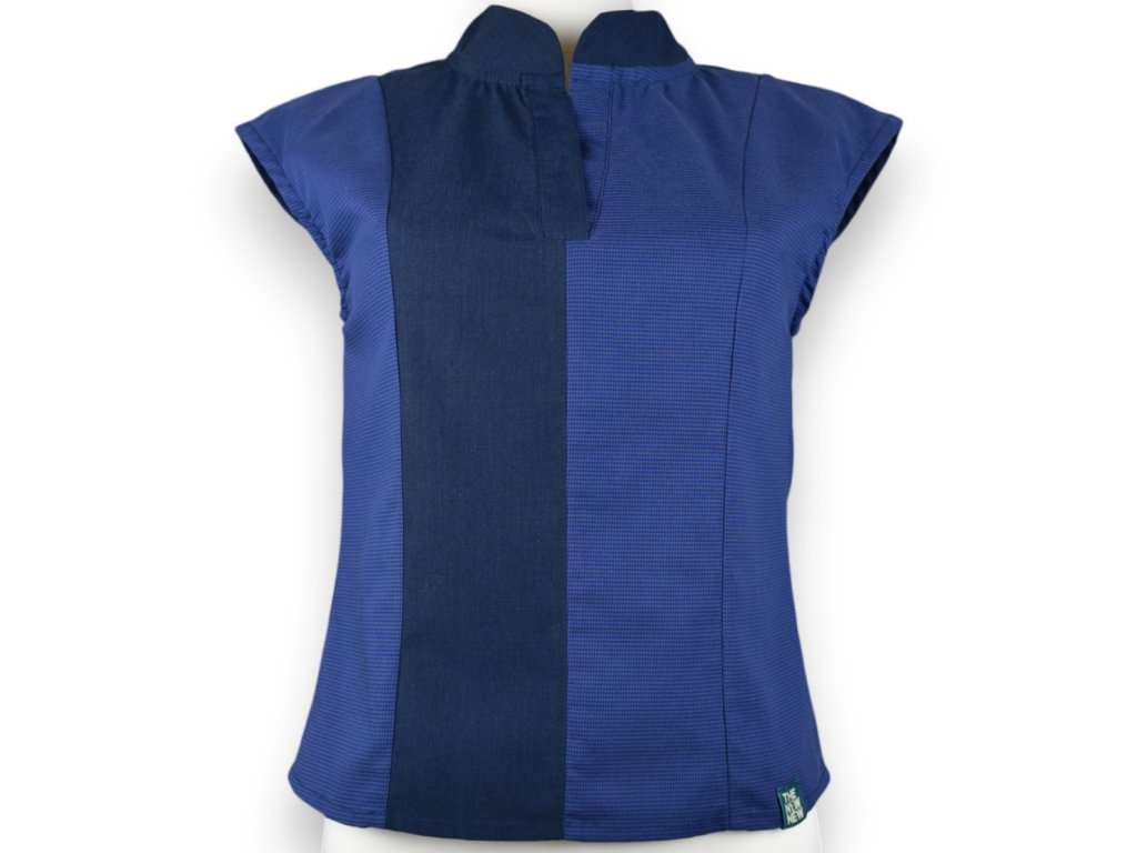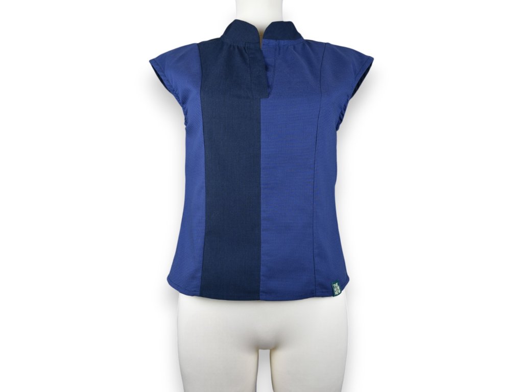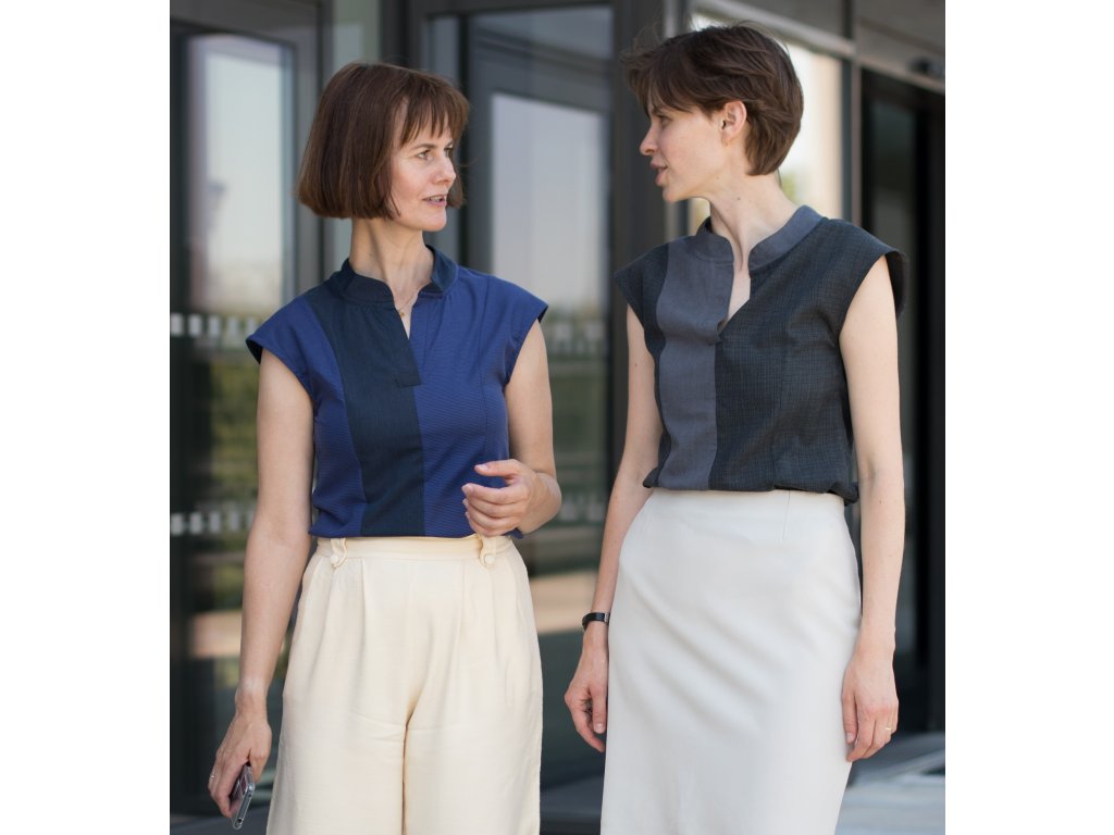 Dámská polokošile je z tkaniny bez elastanu a nemá zapínání. Má jemně volnější střih, aby šla zastrčit do sukně nebo kalhot a trochu podkasat. Nemá být upnutá, to byste ji neoblíkly.