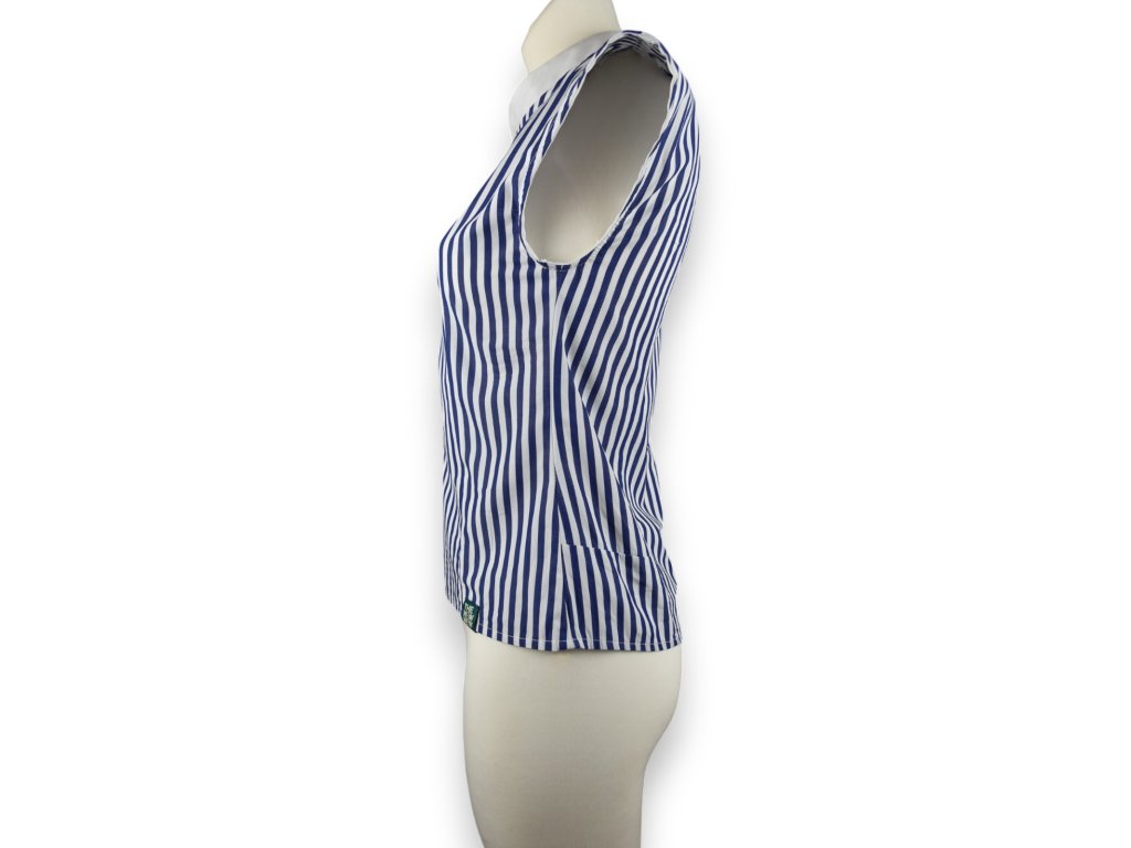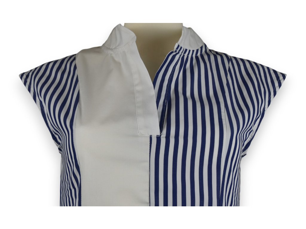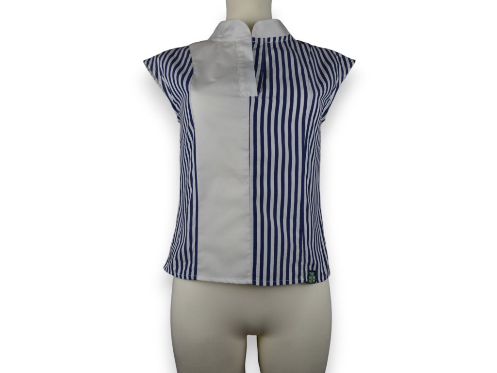 Dámská polokošile je z tkaniny bez elastanu a nemá zapínání. Má jemně volnější střih, aby šla zastrčit do sukně nebo kalhot a trochu podkasat. Nemá být upnutá, to byste ji neoblíkly.