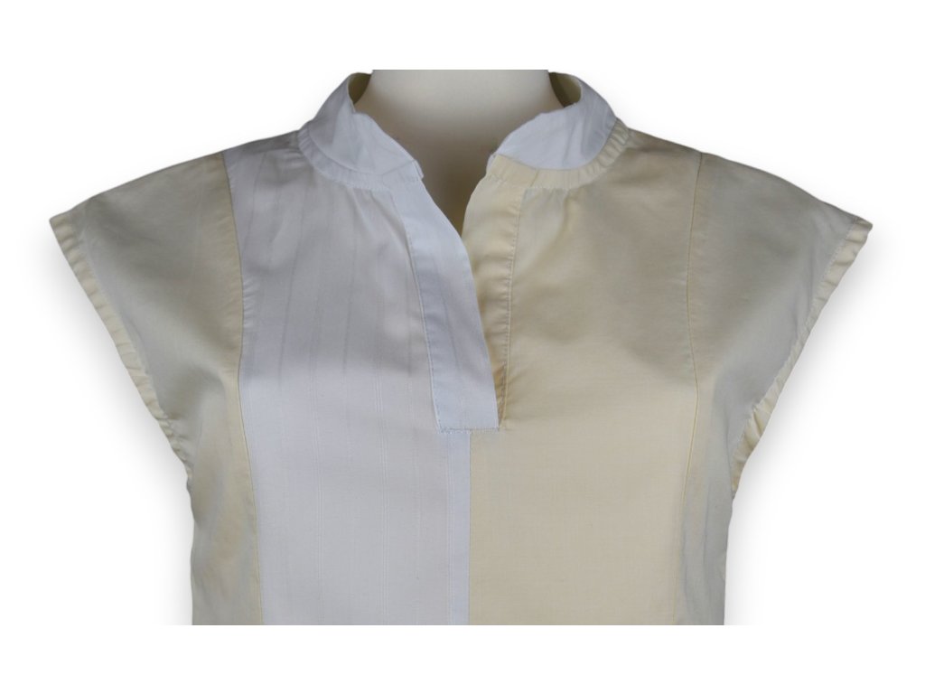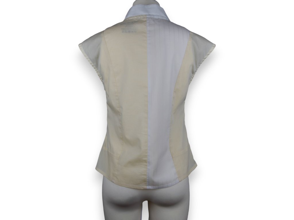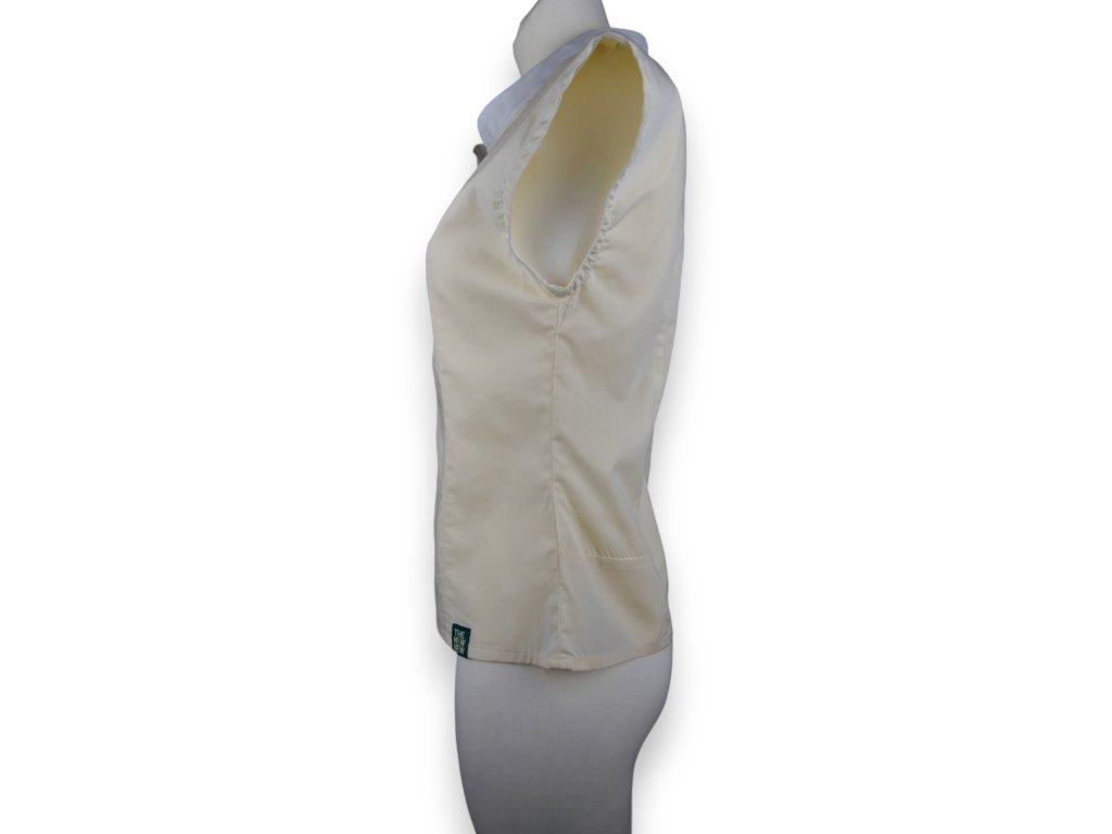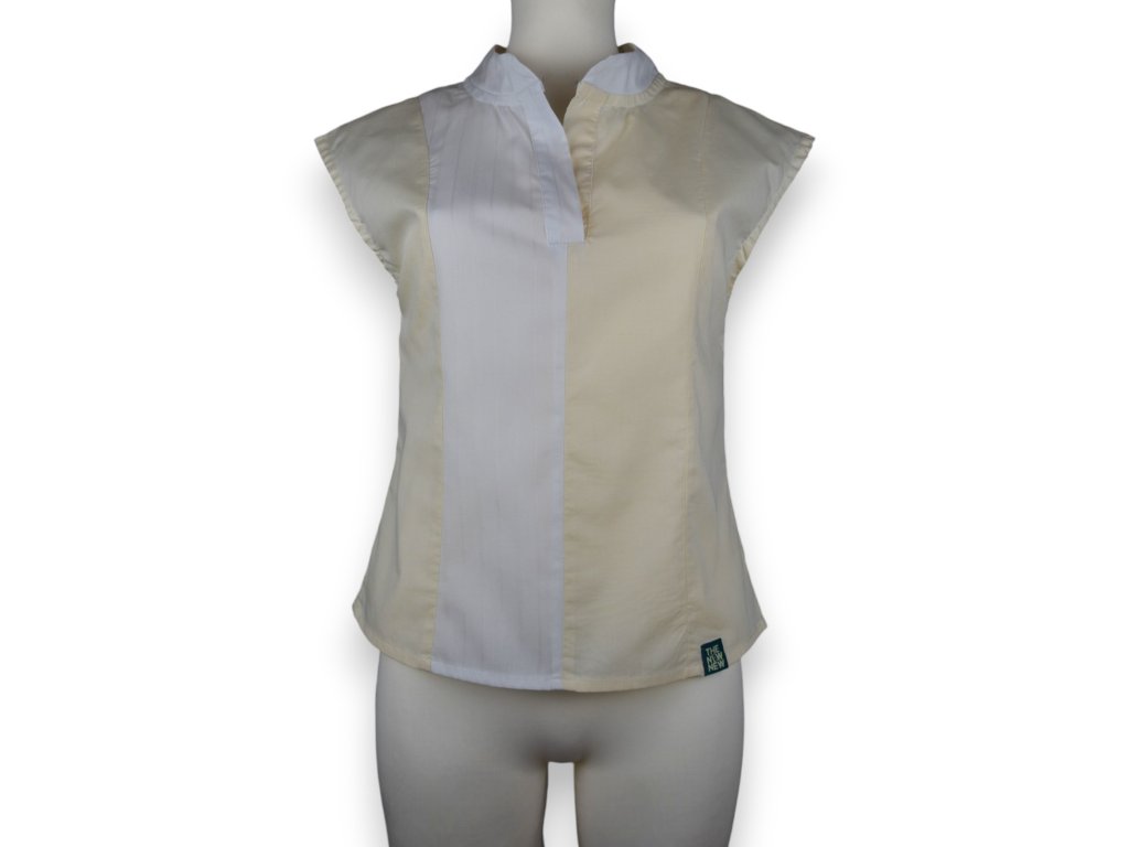 Dámská polokošile je z tkaniny bez elastanu a nemá zapínání. Má jemně volnější střih, aby šla zastrčit do sukně nebo kalhot a trochu podkasat. Nemá být upnutá, to byste ji neoblíkly.