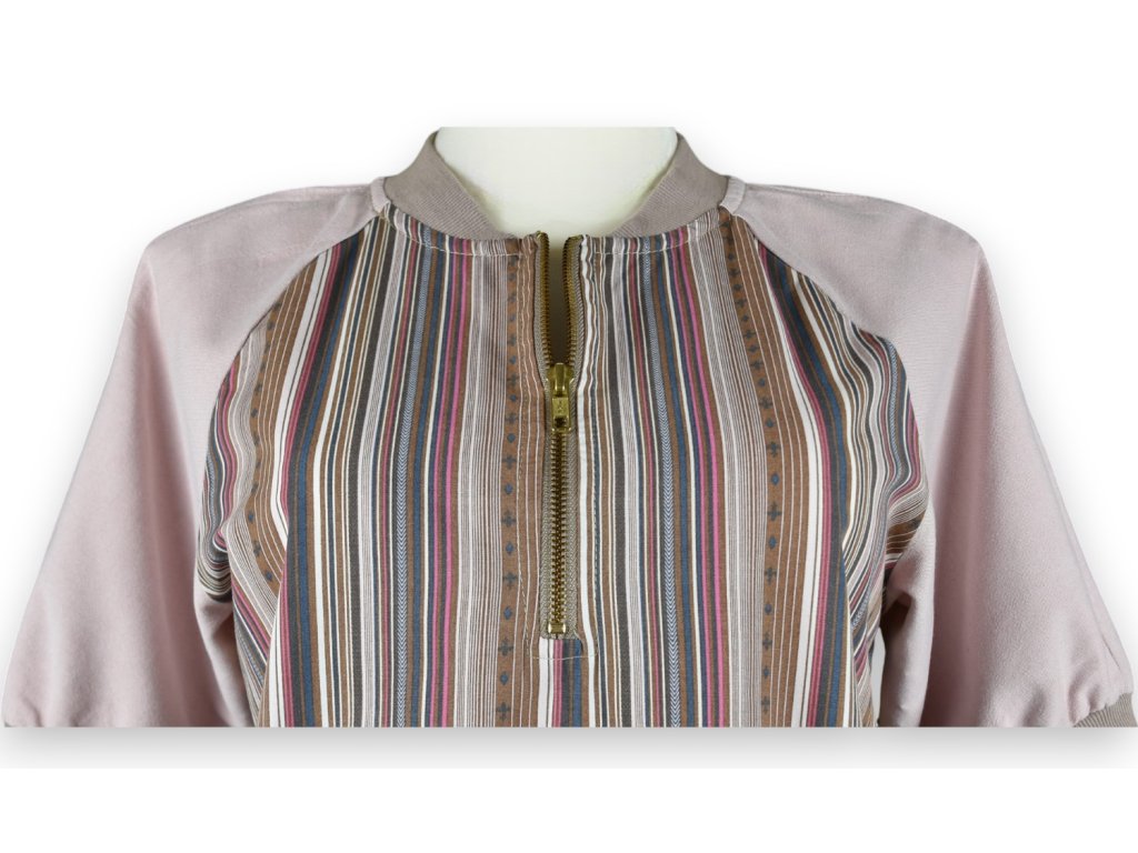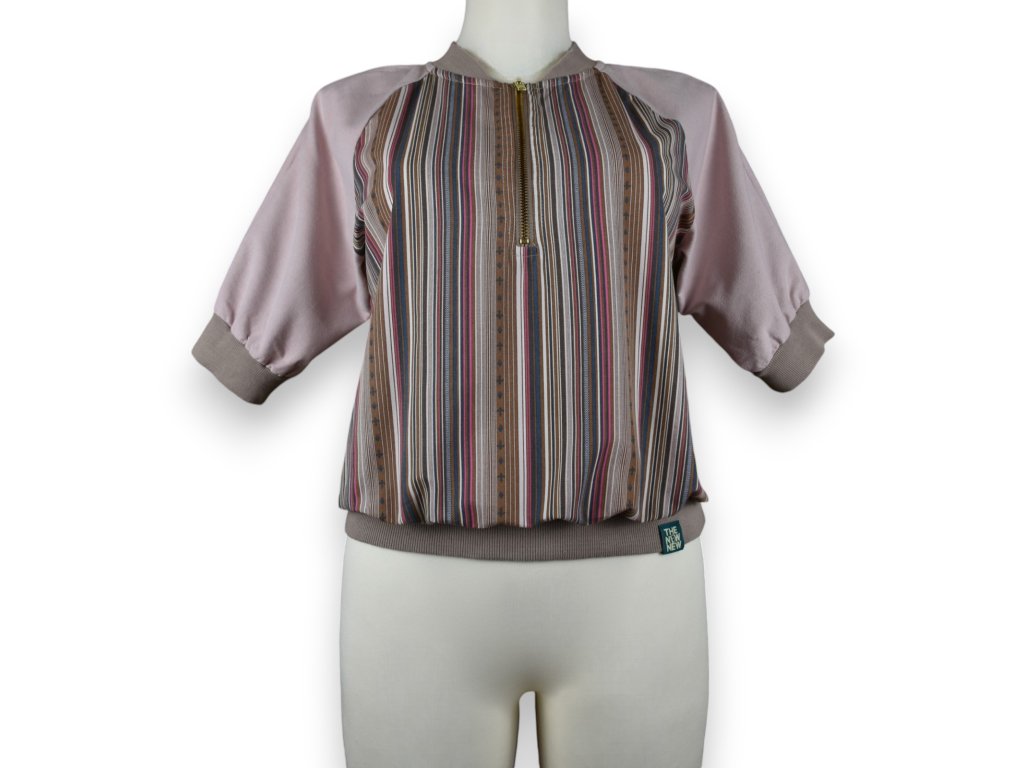 Tahle halenka se zipem vznikla ze dvou vyřazených pánských košil. Dali jsme je dohromady tak, aby si sedly – barevně i materiálem. A vy z toho teď máte kousek, co nikdo jiný mít nebude. Žádnej klon, žádná sériovka.