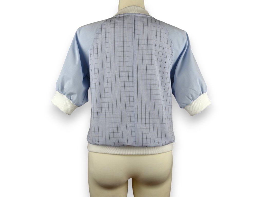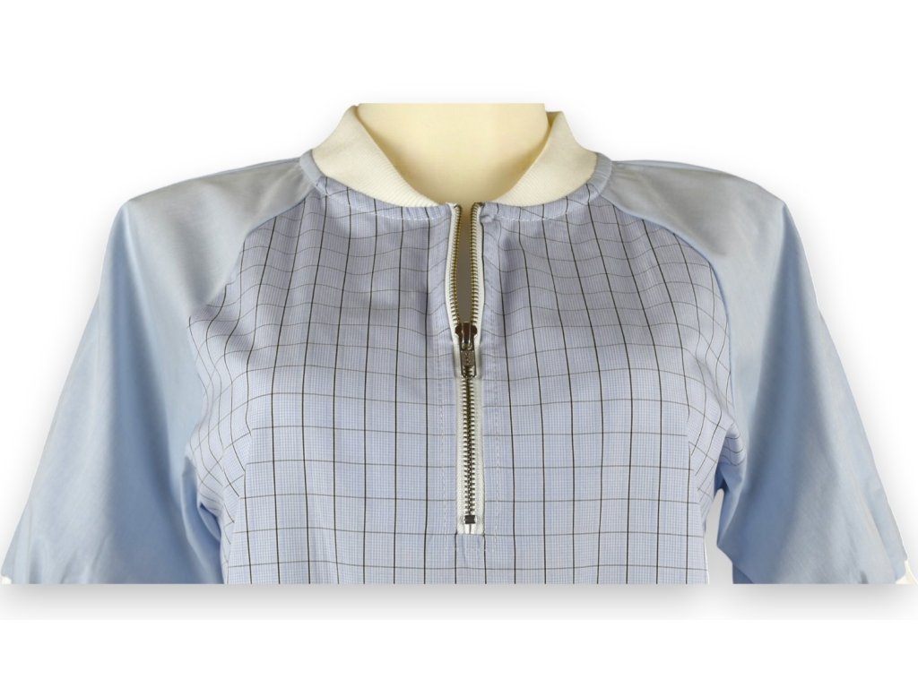 Tahle halenka se zipem vznikla ze dvou vyřazených pánských košil. Dali jsme je dohromady tak, aby si sedly – barevně i materiálem. A vy z toho teď máte kousek, co nikdo jiný mít nebude. Žádnej klon, žádná sériovka.